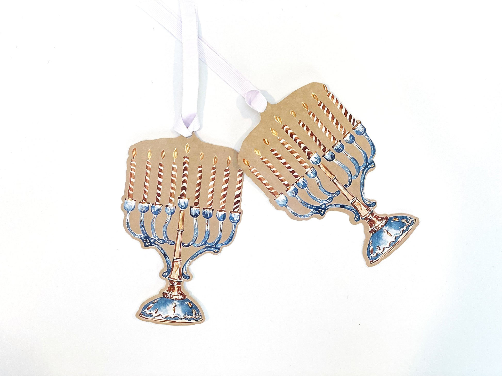 Celebrate the Festival of Lights in style with JOSIL Paperie's Hanukkah Gift Wrap. This delightful wrapping paper features stunning blue and white designs adorned with Menorahs and Dreidels, perfectly capturing the spirit of Hanukkah.