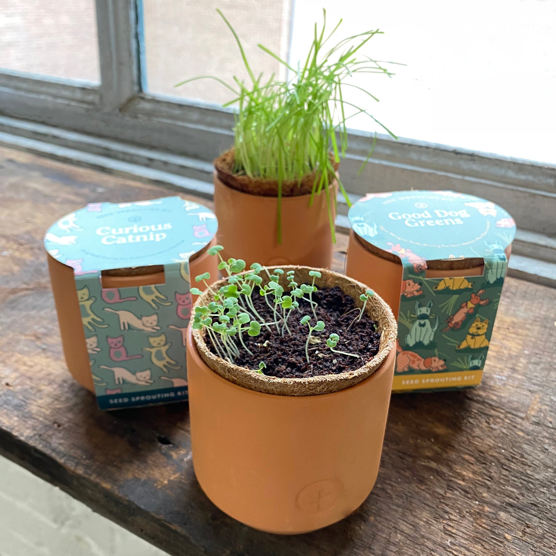 Treat your dog or cat to a homegrown, all-natural snack that supports your pet’s health and wellbeing. Features a terracotta planter with a water-tight glazed interior and a nested coconut husk liner that provides drainage. As the plant matures, the liner can be transplanted into a larger pot or garden, and pot can be reused. A great gift for the furry friend on your list.