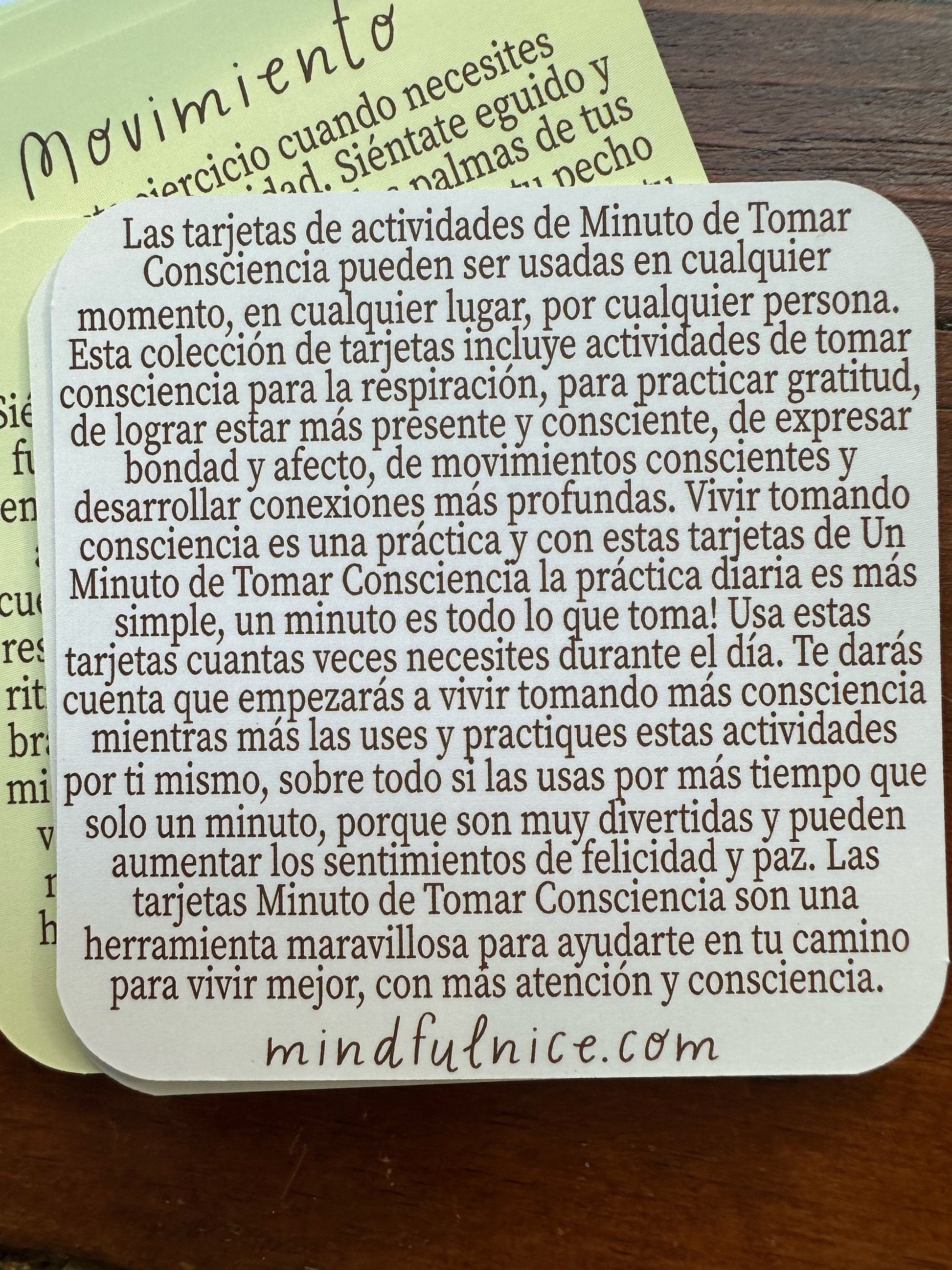 This listing is for the SPANISH version of the original Mindful Minute Activity Card Deck by Mindfulnice. These Mindful Minute cards were created by me based on lessons that I practice with my students. They can be used at anytime, anywhere, by anyone. This collection of cards include 4 categories of mindful activities for breathing, practicing gratitude, becoming more presently aware, and expressing loving kindness to yourself and others. The cards are durable and feel nice to touch. They measure 3"x3" and are perfectly sized to carry with you.